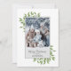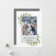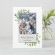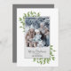 Den här designen har ett grönt julkort med ett snyggt-trendig-kalligrafi-skript, botaniskt vinterblad-löv-löv, enkel minimalistisk, minimal klassiker, familjefoto-bild-1, klassisk traditionell klassrumslös, lätt grönt, grått och vit, helgdag förenklad-elegans minimal, klassisk elegant-fotokortsmall, grönt helgdag-fotokort