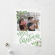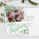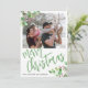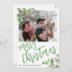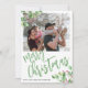 Modern God jul-manus-helgdagar för vinterfamiljens fotohälsningskort med trendig vattenfärgsgröna grenar och heliga bär. Anpassa den med ditt foto och din text på båda sidor!