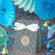 En liten påse i blå grönt för butiksägare och bagare till paket-småbagerier eller matvaror som t.ex. maträtter eller choklad. Perfekt för lagerhållare. Särskilt trevligt för trädgårdsodlare med sin snygga lilla blomma och löv lattice-mönstrad bakgrund.