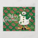 God jul Grönt Snögubbe Helg Vykort