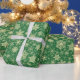Denna julomslutning i grönt är papper mönster i elegant gult snöflingor för att omkullkasta helgdagar i stil i presenter i.
