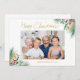 I snyggt dekoreras julkortet med vattenfärgat blad och bär i rött, grönt och guld. Anpassade enkelt med ditt namn och din bild. Ursprunglig vattenfärg © Michele Davies.