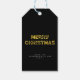 Elegant och moderna märkre för gåvor, där God jul i guld påverkar en svart bakgrund och anpassade för din familj namn eller det budskap du väljer