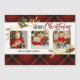 Vackra och festliga helgdag med faux guld löv, holly och anpassningsbar God jul på vit banderoll med guld gräns, 3-fotomall med rik röd, svart och guld tartan bakgrund. Innehåller redigerbar text fält.