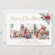Guld och det vita helgdag-kortet i snyggt säger "God jul" i det moderna ansiktet guld, med plats för två av dina foton. Det finns också en söt bukett med röda och vita julblommor.