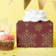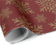 Lägg dina helgdag på en papper julklapp med guldfärgat snöflingor mot röd bakgrund. Er presenter kommer att se extra tillsammans under Julgran.