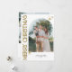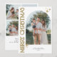 Ett minimalistiskt trendig med modern fotokollage julkort med faux guld God jul-typografi och stjärnor, fem foton, familje-namn och din helgdag. Enkel att anpassa sig på båda sidor!