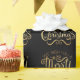 "Vi önskar er en God jul". Vacker guld-typografi på papper svart bakgrundsförpackning. Så elegant och chic för säsongen. Föreställ dig det på en helgdag gåva. Vackert!