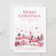 God jul Greeting Card med en illustration av en rosa och röd stad med snö.