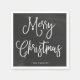 De här enkla och trendig helgdag pappra blöjor säger "God jul" i rustiska, vita handskrivna skript på en svart, kritaktig bakgrund.