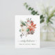 I julklappen i hälsning står det "god jul", men du kan ändra ordalydelsen med hjälp av mallen om du vill. blommigtar, löv och bär med trendig i varma skuggor av rött, grönt och vitt tillför snyggt och fräckhet. Baksidan av vykortet har plats för att du ska kunna anpassa dig med ett meddelande.