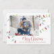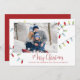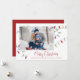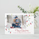 Den här designen har en snygg Jul-helgdag ljus, ett enkelt familjefoto från god jul, klassisk färglös röd typografi,1 trendig i bild, ett enkelt trendig i modern elegant, minimalistisk snyggt-träd-trimning, modernt calligraphy-skript, dekoration julsträng av ljus, teckningar av laura Lacina, ett roligt-helgdag-fotokort