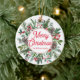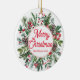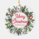 Elegant God jul Helgdag Greenery Red Script Ceramic Ornament är ett vackert tillägg till alla dekorationer av Julgran eller helgdag. Detta prydnadsföremål har ett sjudskript som lyder "God jul" mot en lush grönt av evergreen grenar, holly löv och bär. Det keramiska materialet ge är ett klassiskt och tidlöst ornament som kommer att hålla i flera år för komen.