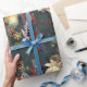 En vinterdesign med en vinter-helgdag med vinter-vedmarksskog med skakande guld snöflingor, poinsettias, lymfkörtlar, gräs och röda bär med röd boll-ornament på rödband och God jul skrivet i guld brushstroke.