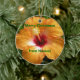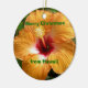 Mele Kalikimaka. God jul i HAwaiian. En ljus tropisk blomma - en strålande röd och mango-färgad hibiscus- och anpassade text på denna hawaiiska blomma Julgran ornament.