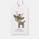 God jul Hjort i ett rött tomhatt Presentetikett