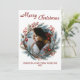 Fira säsongen med den här eleganten och uppriktigt God jul fotokort. Den här designen har en vackert muterad vinter-hornkrans av bär och gräs-grönenergi som omger ditt favoritfoto och den exuderar tidlös charm och helgdag-värme. Den översta visar en snyggt "God jul" i mörk grönt skript, medan grund innehåller utrymme för ditt namn och året. Perfekt för att dela kärlek och glädje med familj och vänner denna jul.