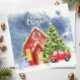 God jul hus med träd och det röda snö-Helgdag-kortet