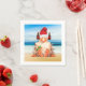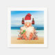 Perfekt cocktail-napkins för en julfest! En söt gnome bär en tomtöl och njuter av helgdagarna på stranden.