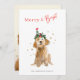 Skicka glatta helgdag önskemål med det här "Merry & Bright"-julkortet med en vattenfärgad doodle-hund med en strimlad julhatt och mistletoe krona. Omgiven av guld stjärnornas accenter på en mjuk vit bakgrund är den här trevliga designen perfekt för djurälskare som vill säsongens värme, stollig och vaggande svan.