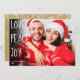 Ett modernt fotokort som innehåller ditt speciella favoritfoto och ditt familjs namn och datum som är angivet i klassisk modern helgdag över ett chic-skriptmeddelande om kärlek fredsglädje. Designad av Thisisnotme©