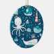 God jul i marinblått och vitt marint havsområde julgransprydnad keramik