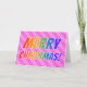 Den här roligten innehåller julhälsningskortet budskapet "GOD JUL!" med brev med en färgstark regnbågsspektrumövertoning mönster. Bakgrunden har en strimlad rosa hjärtform i mönster.