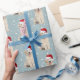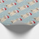 Kute guldkopieringsvalp med julhatt och snöflingor mot vinterblå bakgrund.