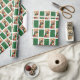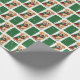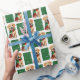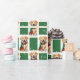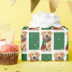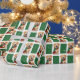 Watercolor Golden Retriever i en röd och grönt vinterscarf och snöflingor.