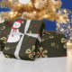 Ett charmerande helgdag mönster med vackra snögubbar i Santa Hats, gyllene snöflingor, röda bögar och gröna accenter på mörk grönt bakgrund. Den här festliga designen utstrålar julklappning och är perfekt för att slå in pappra, helgdag dekorerade eller säsong. De invecklade detaljerna och den varma paletten i färg väcker en mysigt helgdag och skapar den idealisk för att sprida glädje under julsäsongen.