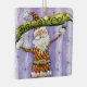 Vintage illustrerar den söta God jul-helgdag med en vacker lycklig, jolly Jultomten med en diamant mönster hatt och som står i snö på vintern. Han håller en banderoll som säger "Tro" med en bakgrund i lila med snurrar och stjärnor som ser ut som snöflingor. Säsongens hälsningar!