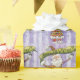 Vintage illustrerar den söta God jul-helgdag med en vacker lycklig, jolly Jultomten med en diamant mönster hatt och som står i snö på vintern. Han håller en banderoll som säger "Tro" med en bakgrund i lila med snurrar och stjärnor som ser ut som snöflingor. Säsongens hälsningar!