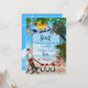 En varm sommarstrandscen med en flygande tomte på sin släde som säger Lär ut fred, och glada pingviner, med tomtehattar och småbarn för ett välgångsönskningskort att anpassa.