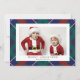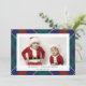 Anpassa den här marinblå, grönt-, röd och vit pläteringsdesignen med ditt eget vackra foto och hälsning till ett snyggt julkort som kommer att glädja dina kära.