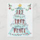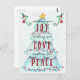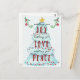 En fantastisk juldesign med önskemål av glädje, kärlek och fred i ett julgran med vattenfärg, med staplar av helgdag och sligh klockor och grön i hörnen.
