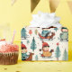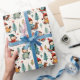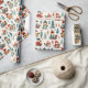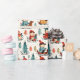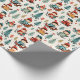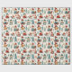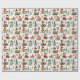 En personlig julomslutning papper med söta, vita ungar som sjunger och gräs träd i tegelrött och turkos. Vitmisk vattenfärgad tegelrött, guld och turkos grönt.