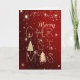 Elegant Julgranar och god jul mot röd bakgrund och en sentimental vers inuti.