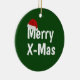 En lustig julhatt och ord Merry X.Mas på gröntens bakgrund.