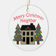 God jul, granne med hus och dekorerat gräs träd