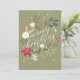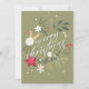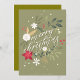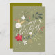 En mjuk inzoomning på ett vackert designat julkort med en frodig arrangemang av festliga blommor och lövverk. De livfulla färgerna rött, vitt och grönt skapar en varm atmosfär medan kameran långsamt panorerar över de intrikata detaljerna i de blomsterliknande elementen. Den eleganta skriften "God Jul" sticker ut mot den dämpade gröna bakgrunden och inbjuder till en mysig julstämning. Mjuk, diffus belysning framhäver kortets texturer och skapar en lugn och glad stämning, perfekt för årstiden.