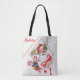 Enkel att anpassa till väskan, lägg bara till ditt namn! Vintagen illustrerar julbilden med helgdag Jultomten med polkagrisar, klockor och en sackande fullt leksak inuti en rombform med stjärnor.