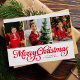 Det här tre-fotojulkortet är perfekten för att skicka helgdag. en kollage med tre foton tillsammans med ett rött skript "God jul" som ditt familjejulkort. Den röda typen är festive och roligt och den motsvarande röda prickade baksidan har utrymme för ett längre anpassningsbar-meddelande. Detta klassiska helgdag-kort är underbart som ett familjejulkort, ett par julkort, ett morförälderkort med mera. Hitta mer stilar och färg i samlingen av Lea Delaveris Design. Finns även som hämtning av digitalt helgdag-kort.