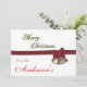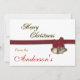 Klassiskt rött och vitt färg med guld-skriptet God jul och två klockor med holly på ett rött band. Vackert rent och klassiskt utseende.