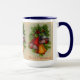 Skål jul i Klockor i pulverrött, blått och guld i julklapp mugg med skal och bär.