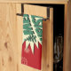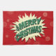 God jul tecknad stil illustration med Julgran och snöflingor dekoration mot röd bakgrund