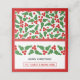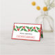 God jul kajbär mönster rött och grönt vikt eskort med rött gräns, texten "God jul" och gästernas namn.