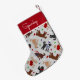 Cute labradoodle hundar, klädd i festliga helgdag, jultomter och glasyssare med utspridda julprydnadsföremål på grått-bakgrund med anpassningsbar pet namn.
