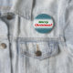 Den här julknappen har en ljusblå och svart vågigt linje mönster. Den innehåller den varma hälsning, "God jul!", i röd och grönt färgad. En sådan knapp kan vara ett roligt sätt att önska någon en god jul. [~Z0000103]