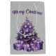 Merry Cristmas lila Julgran presentsäck. En exklusiv och en stor presentväska. Anpassa med ditt textval både fram och tillbaka. Ha en god Lila jul. Finns i olika färg och avslutar.
