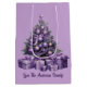 Merry Cristmas lila Julgran presentsäck. En exklusiv och en stor presentväska. Anpassa med ditt textval både fram och tillbaka. Ha en god Lila jul. Finns i olika färg och avslutar.